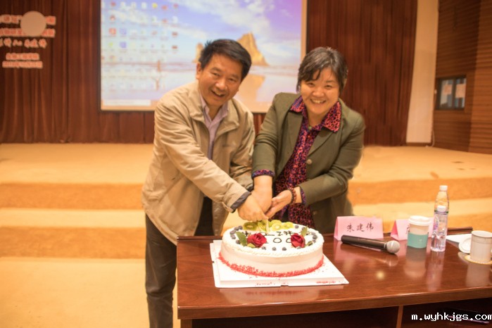 在互动提问,学生们就生物科学、生物技术、生物工程等专业在生物制药中的应用以及生物药物如何治疗基因遗传病等疑惑进行了咨询,也得到了朱建伟的耐心解答。讲座尾声,庄英萍邀请朱建伟共同切开了祝福华理生日快乐与生工讲坛100期圆满举办的蛋糕,并分享给了现场学生们。朱建伟再次表达了殷切的期盼,希望学弟学妹们能在大学时光刻骨学习、勤奋求实、收获真知,培养能力,进一步传承并发扬华理精神。